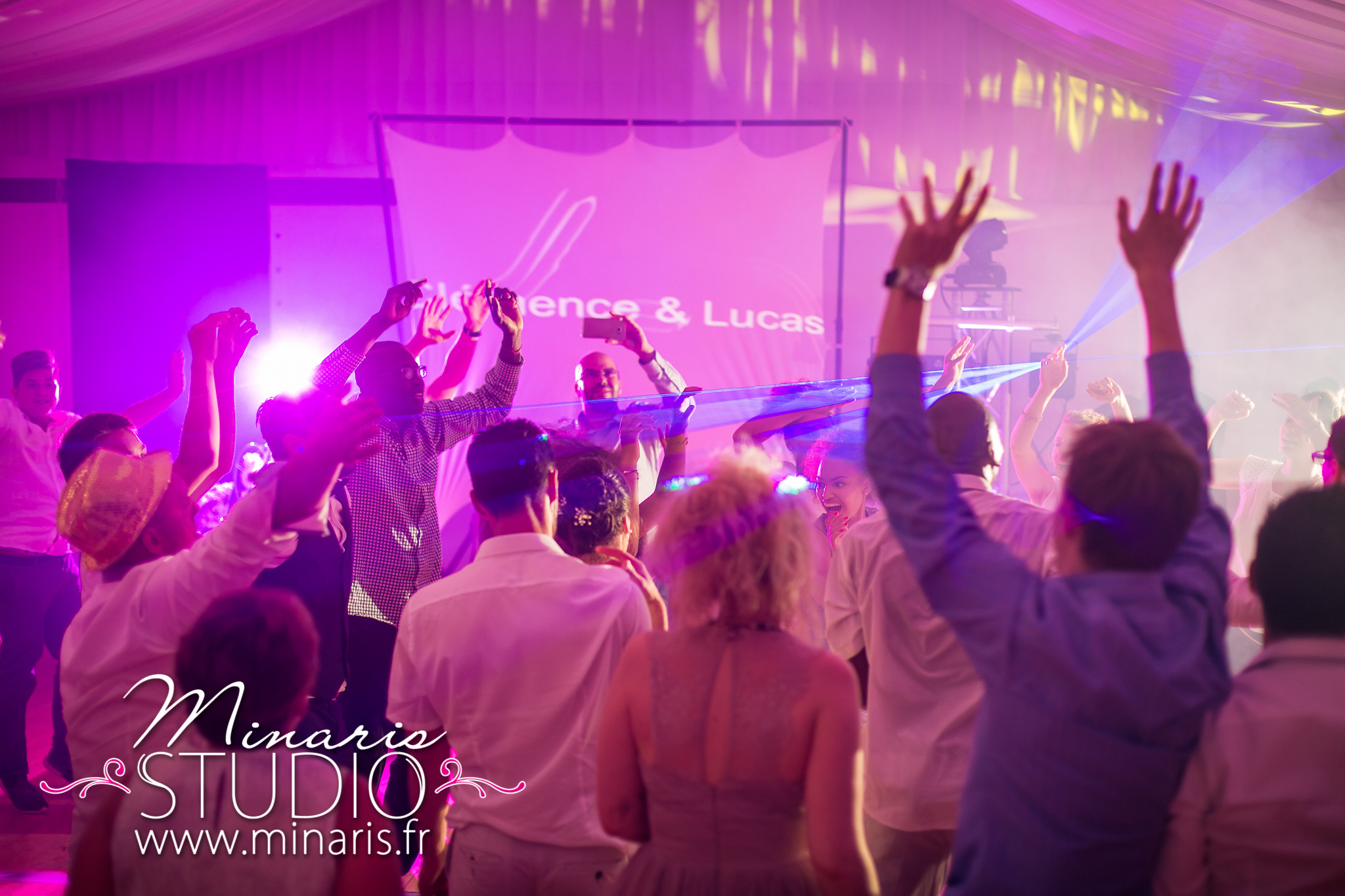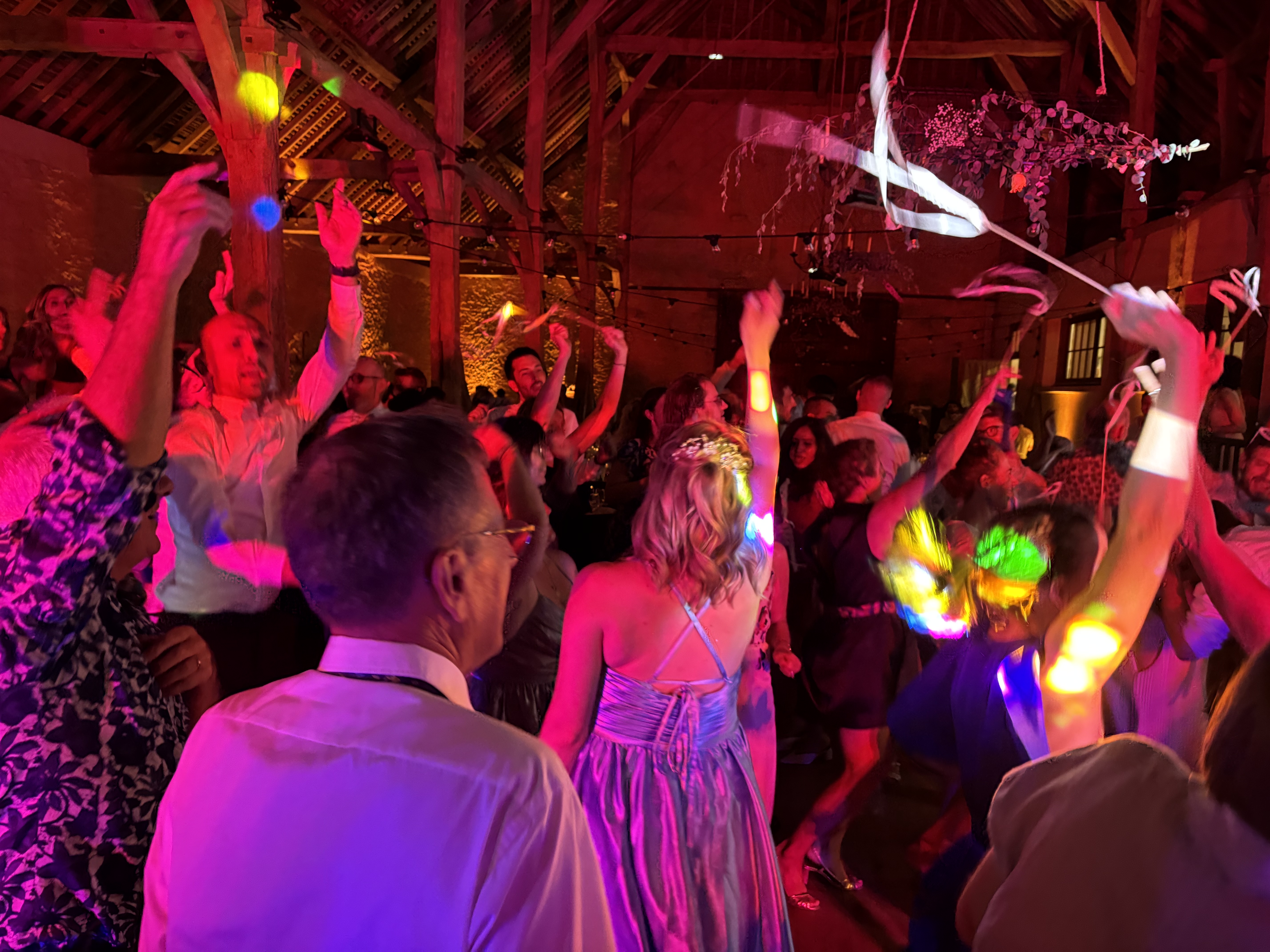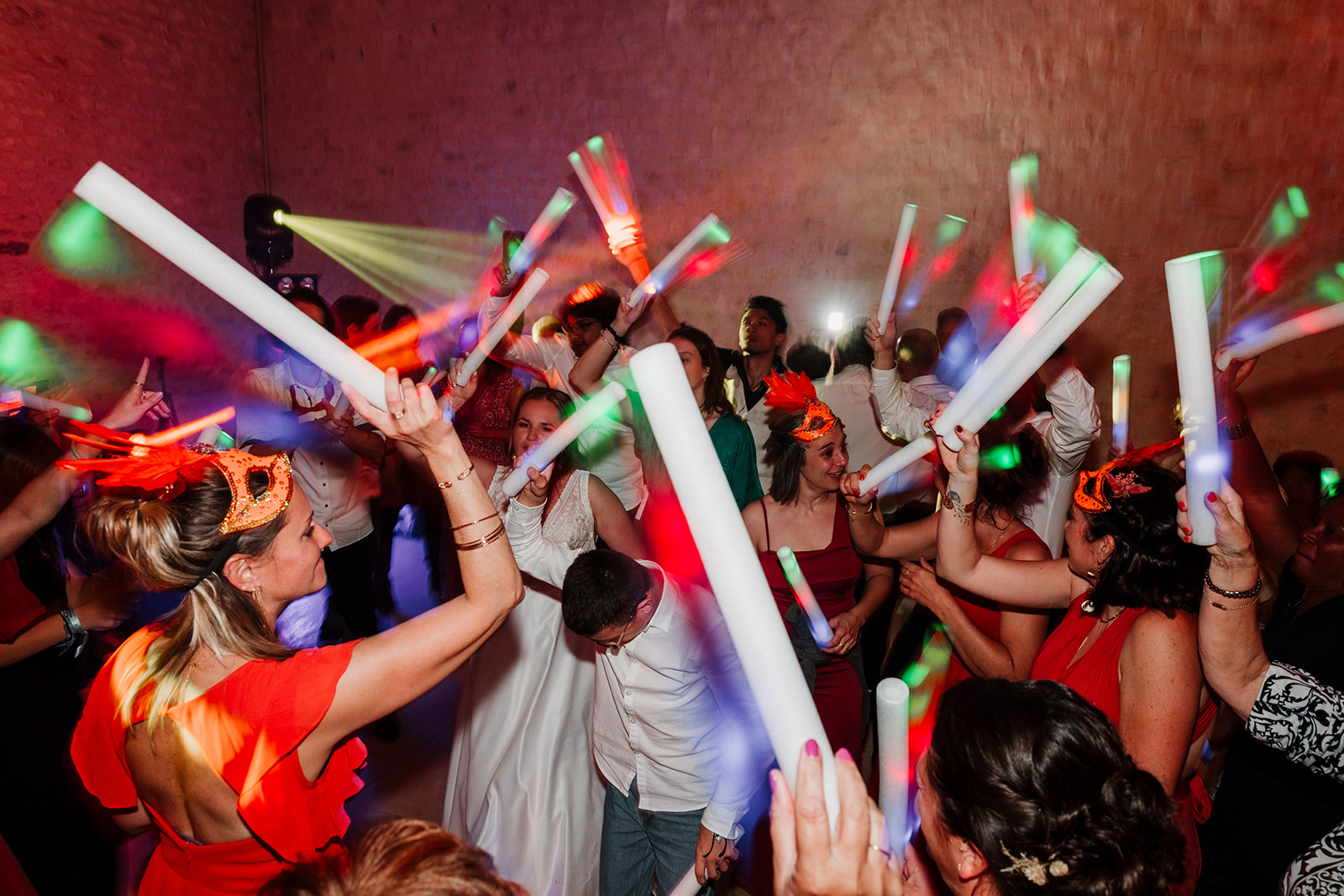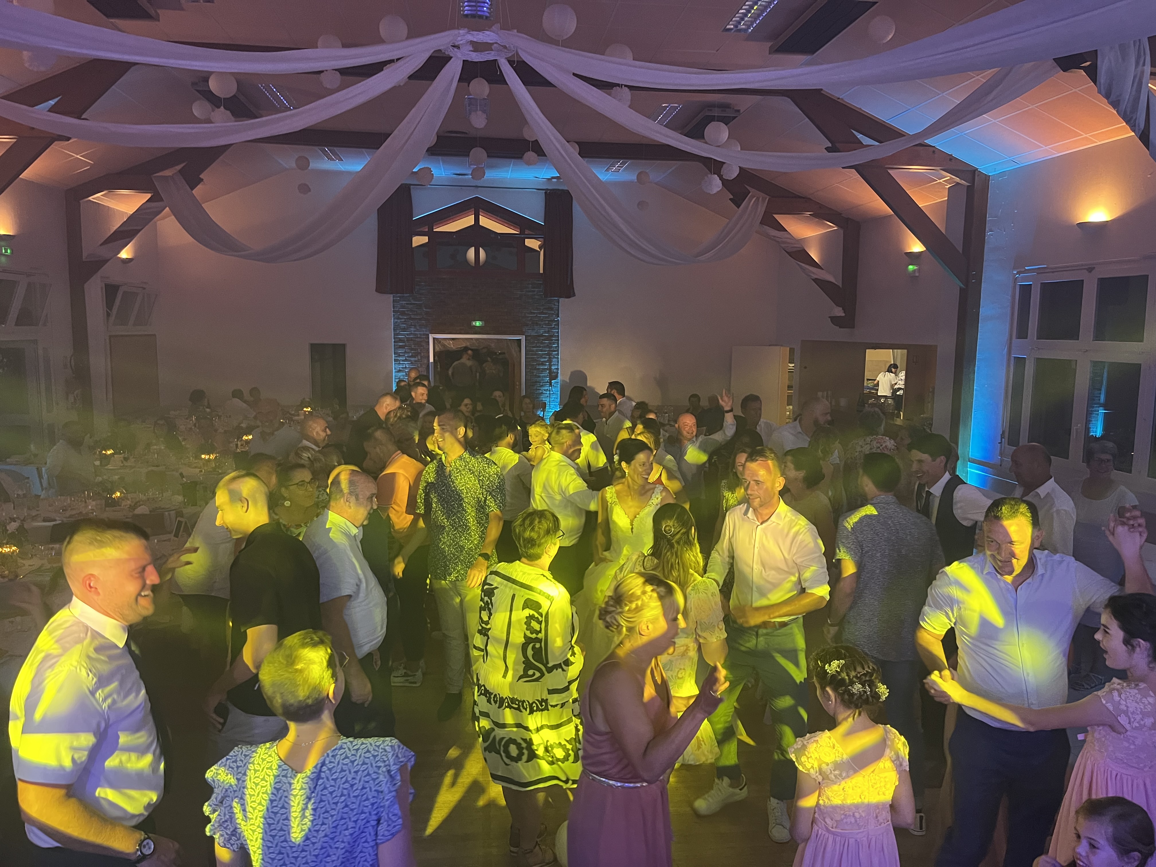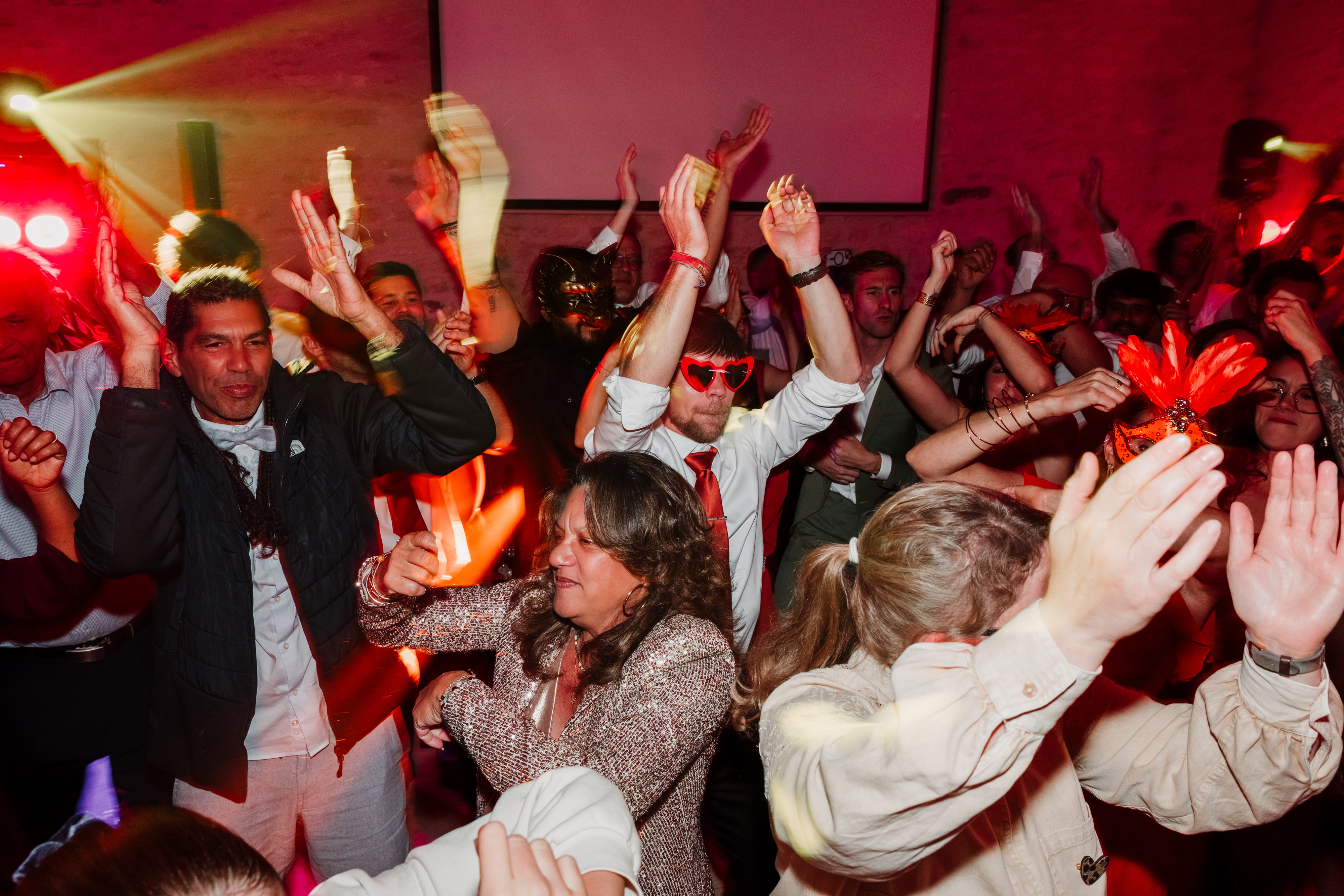Une ambiance festive et chaleureuse capturant l'esprit de fête et la joie communicative d'un mariage réussi.
